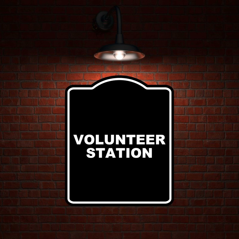 VOLUNTEER STATION BLACK Minimalist Aluminum Composite Sign 15 x 18 inches