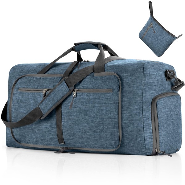 Vomgomfom Travel Duffle Bag for Men, 85L Foldable Travel Duffel Bag with Shoes Compartment Overnight Bag for Men Women,Blue
