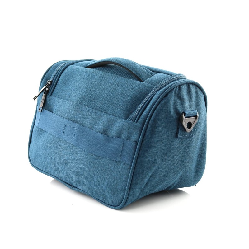 Toiletry bag in petrol made of polyester from the brand Von Cronshagen. One zip compartment, two small mesh compartments
