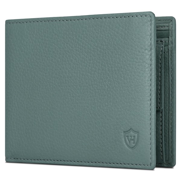 VON HEESEN Men's Leather Wallet with RFID Protection - Genuine Leather Wallet for Men - Women's Wallet, Turquoise (Silver Pine), Landscape Medium (Bifold)