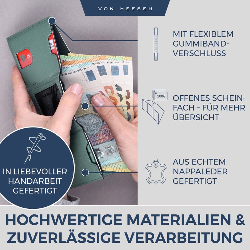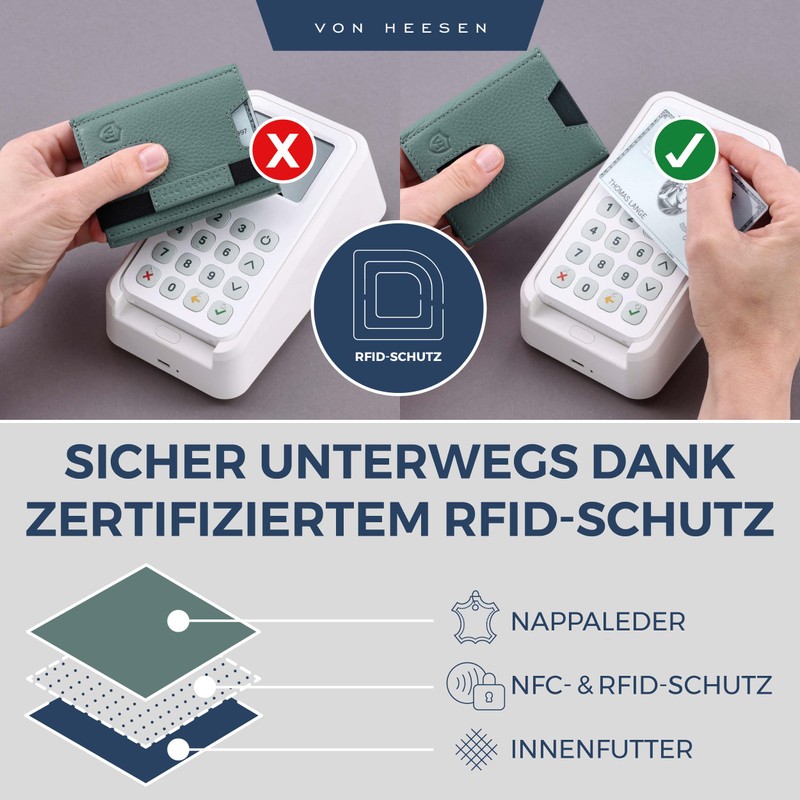 Von Hessen Slim Wallet with RFID Protection – Card Case for Men and Women – Mini Leather Wallet – Small Wallet – Wallet