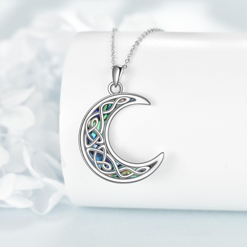 VONALA Celtic Knot Moon Necklace 925 Sterling Silver Moon Pendant Chain Ireland Jewellery Gifts for Women Girls, Silver Sterling Silver, Abalone