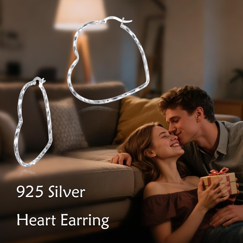 VONALA Heart Hoop Earrings 925 Sterling Silver Large Twist Hoop Earrings for Women 40mm