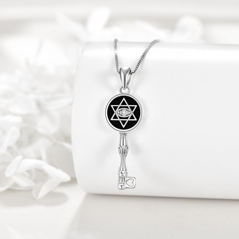 VONALA Hecate/Star of David/Triple Moon Goddess Necklace Sterling Silver Wheel of Hecate Key Pendant Wicca Amulet Jewellery Gifts for Ladies Ladies, Sterling Silver, No Gemstone