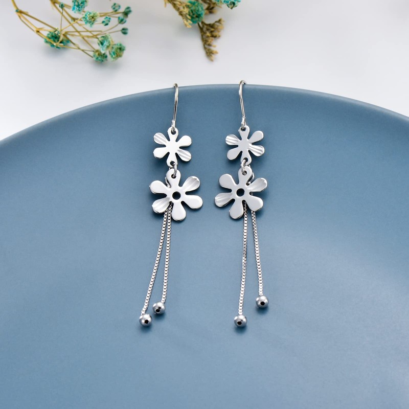 - STYLISH DESIGN: The chain earrings with bright and glossy petal with tassel, which bring you a statement of eye-catching spakle.The fishinghook design makes it firm and not easy to fall off.