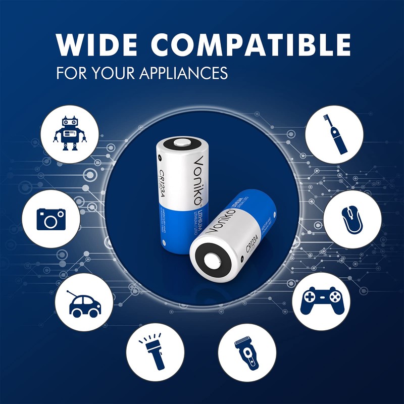 - Each and every VONIKO CR123A lithium battery is equipped with the state of the art: