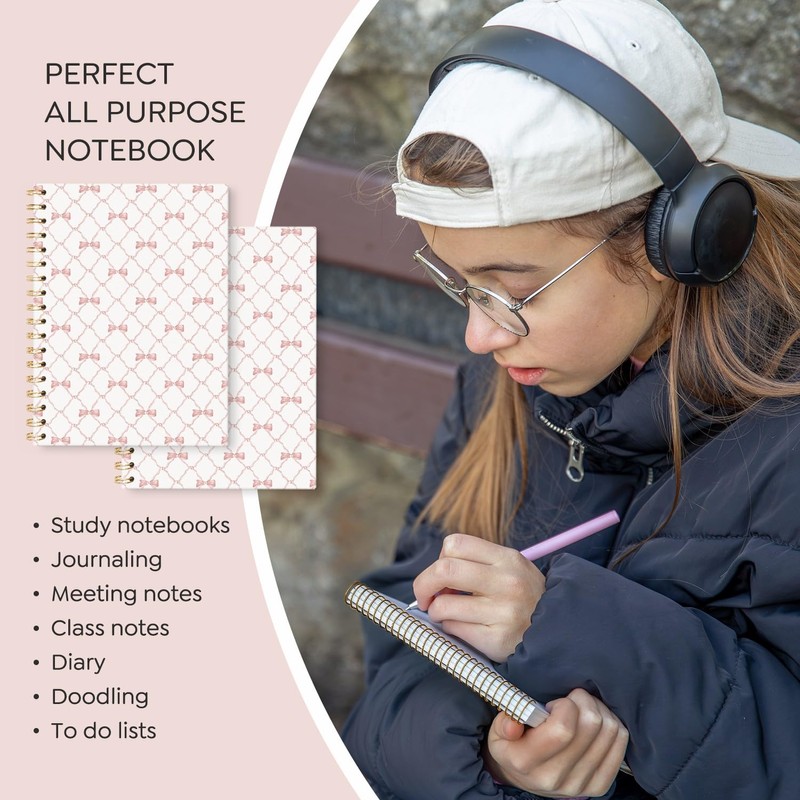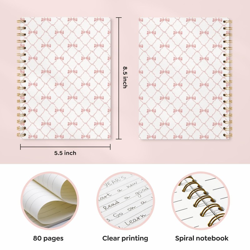 VONTP Preppy Bow Spiral Notebooks, Coquette Pink Bow Ribbon Lined Notebook Hardcover, Aesthetic Girly College Ruled Notebook Journal for Writing, Preppy Girly Office Supplies, 5.5x8.3