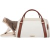 - Pet Carrier Airline Approved: This cat carrier meets airline under-seat dimensions for most airlines, ensuring you can travel with your pet hassle-free. Verify with your airline before travel, as regulations vary. The cat traveling handbag folds flat for easy storage without losing its shape. Two sturdy and smooth PU leather handles for a comfortable grip.