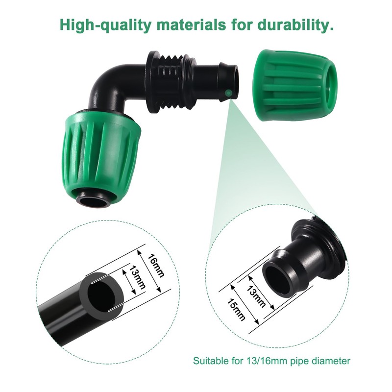 - Hose Connection: Suitable for 1/2 inch irrigation pipes (13mm ID / 16mm OD ).