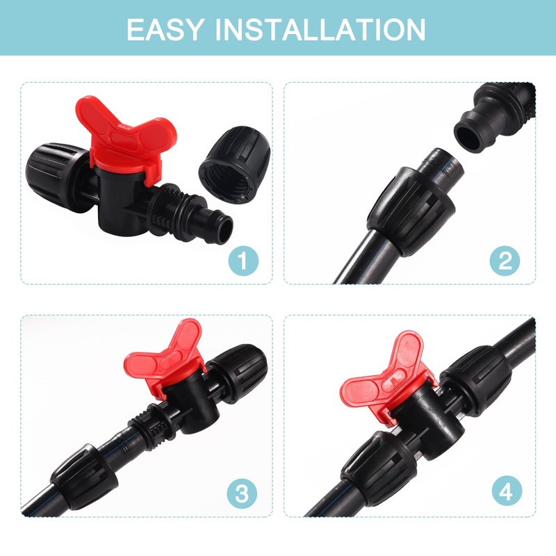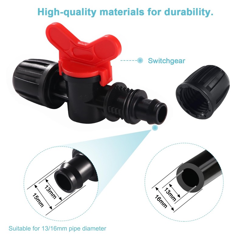 - The package includes: 9 pieces drip irrigation twist lock switch valves.