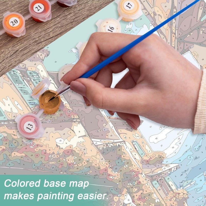 - Meaningful decorations and gifts: After you have finished painting by numbers adult landscape, hang it on the wall or place it on the table to add a touch of art to the home. This paint by numbers adult is also a perfect gift for family members and friends. Give this set paint by numbers landscape to your family and friends and share your artistic taste with them