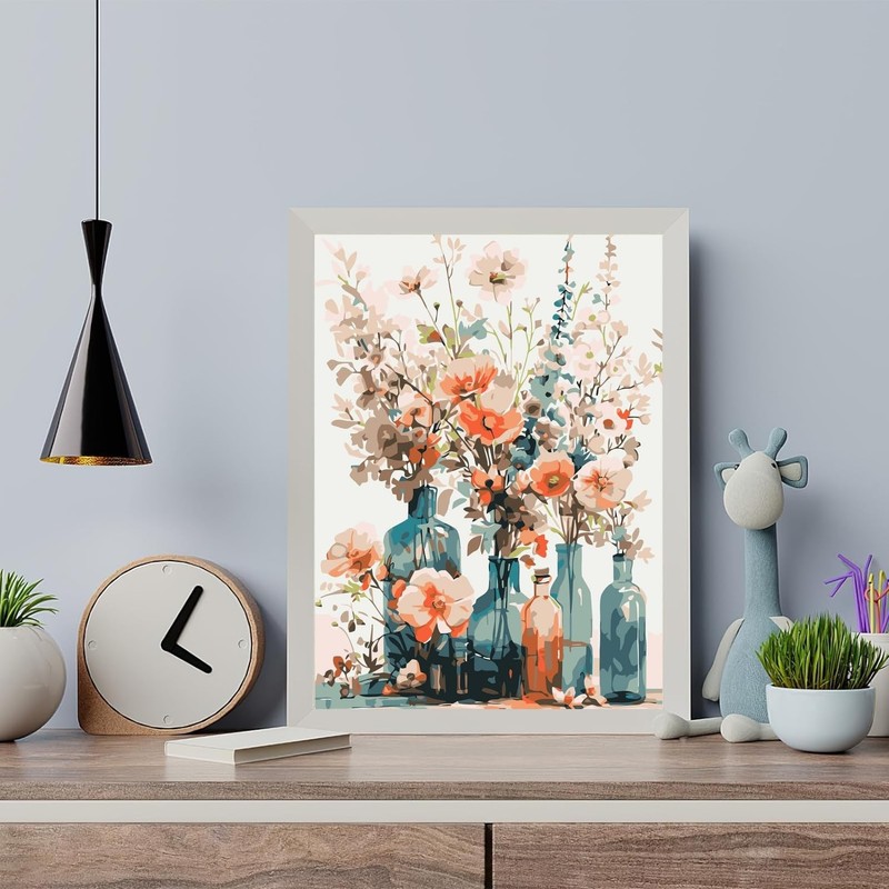 vooiceofco Paint by Numbers Adults Flowers Wrinkle-Free Canvas with 3 Brushes Acrylic Pigment DIY Oil Painting Canvas Set 40 x 50 cm Frameless