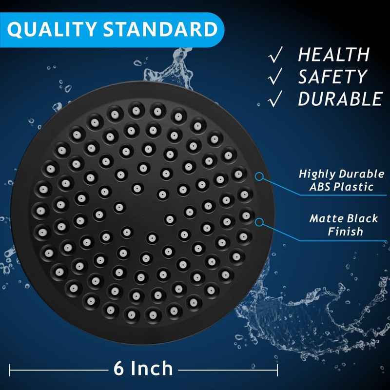 Voolan Rociador de Alta Presión de 15cm - El sustituto perfecto para el cabezal de ducha de su cuarto de baño - Experiencia de ducha confortable incluso con bajo caudal de agua (Negro)