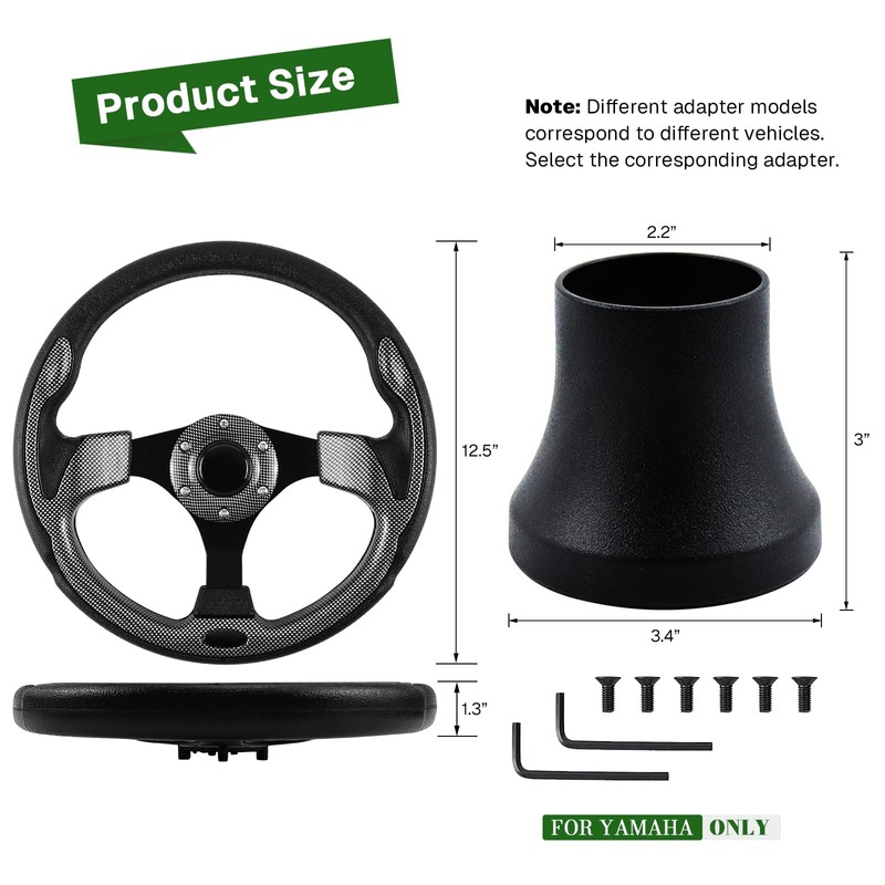 • 【Only for Yamaha Golf Cart】- Golf cart steering wheel adapter for Yamaha golf carts. Please check the applicable model to ensure that the product can be applied!