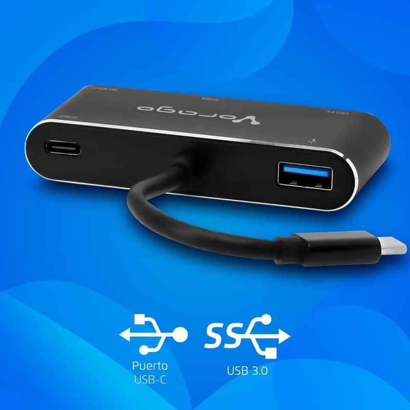 - VIDEO. Conecta a tu puerto USB tipo C este adaptador y comienza a utilizar de inmediato proyectores, monitores y pantallas HD o 4K con sus entradas VGA y HDMI.