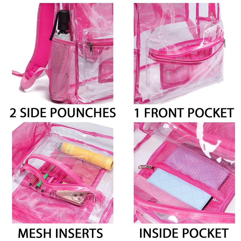 - Multipurpose Use: You can use this see-through backpack for multi-occasions such as colleges, workplaces, sporting events, concerts, camping, beaches, airports, and travel. It's roomy enough to store all the necessities