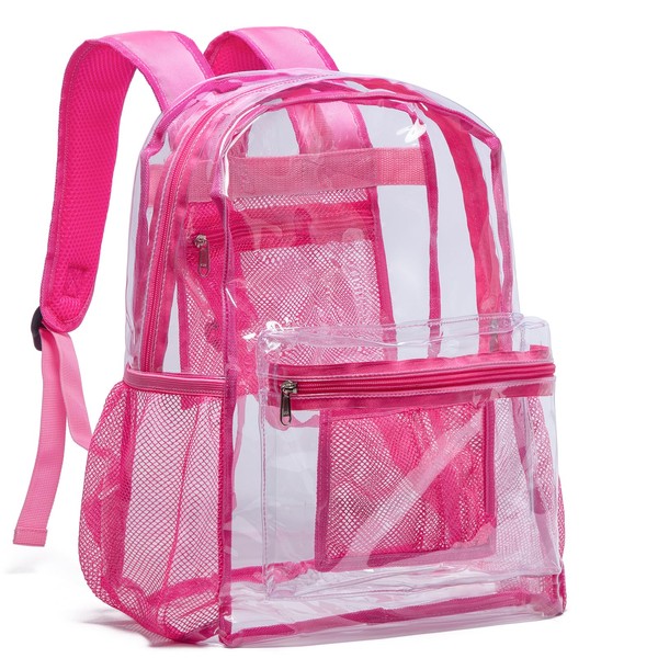 Vorspack Clear Backpack Heavy Duty PVC Transparent Backpack with Reinforced Strap for Work - Pink
