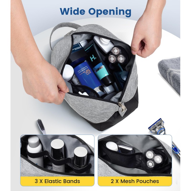 - Suitable size: Measuring x x . inches, this toiletry bag has a roomy compartment that is large enough for your daily toiletries. In addition, with small mesh pockets and elastic straps inside, this dopp kit for men can keep your items organized