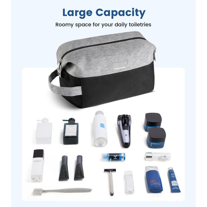 Vorspack Travel Toiletry Bag for Men - Lightweight Mens Toiletry Travel Bag Water Resistant Dopp Kit Shaving Bag for Skincare Toiletries Bathroom Gifts - Black