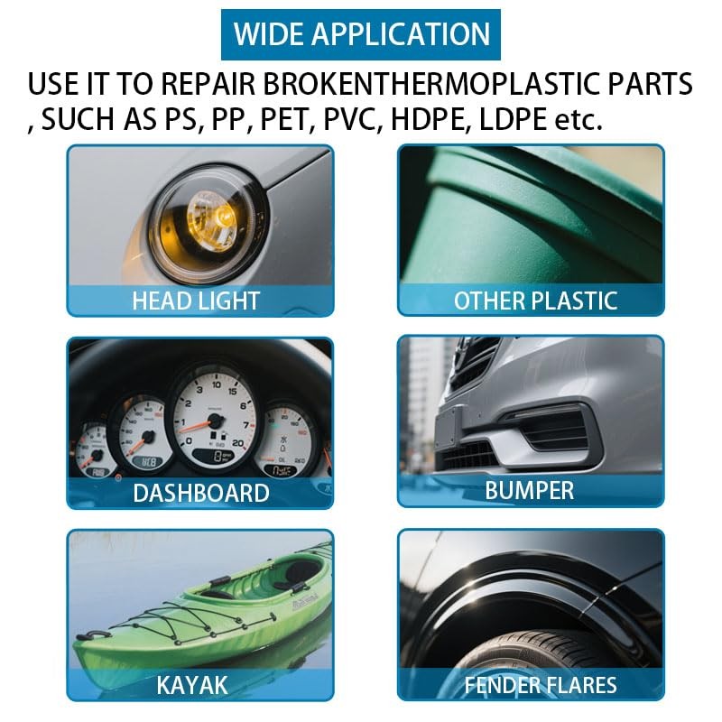 • 【Suitable for Multiple Scenarios】Suitable for all thermoplastics, such as car bumpers, dashboards, water tanks, kayaks, toys, etc. V/M nails are specifically designed for edges and corners, while flat/corrugated nails are suitable for flat surfaces.