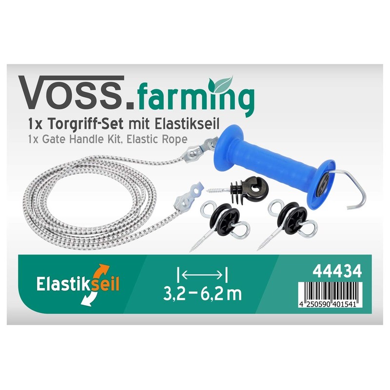VOSS.farming Electric Fence Gate Handle Set with Elastic Rope, 3.20m/ 6.2m