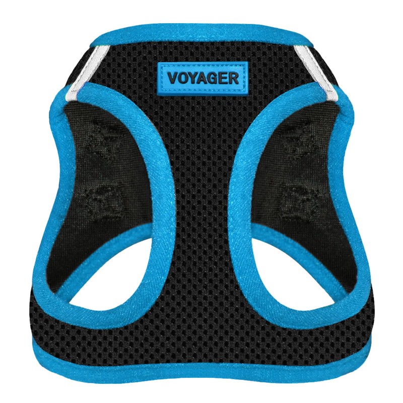 Voyager Step-in Air Dog Harness - All Weather Mesh, Reflective, No Pull Harness for Small, Medium Dogs, Cats - Secure with Hook & Loop Fastener, Buckle, Double D-Rings - Black/Blue Trim, XL