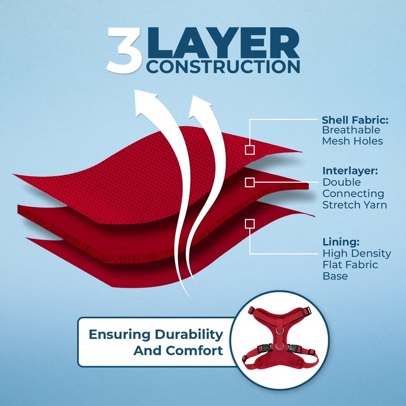 - ALL WEATHER AIR MESH Made from soft, breathable air mesh, this fully adjustable, lightweight and escape proof pet harness is perfect for walks all year round