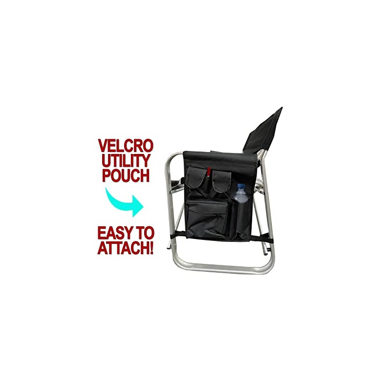 Voyager Tools Short Wide Body Chair Folding Light Weight Aluminum Frame with Large Folding Tray and Removable Storage Pouch Travel Chair
