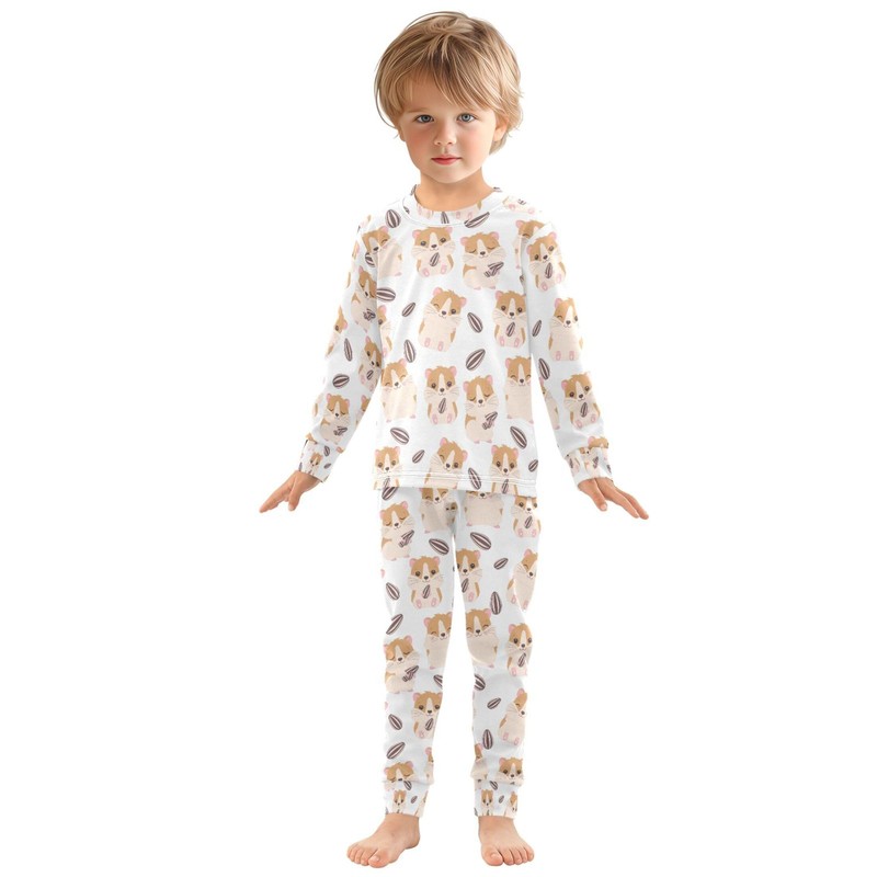 Vozoza Cartoon Cute Animal Hamster Pajama Sets Long Sleeve Top with Pants Cotton Soft Sleepwear 2 Piece Pjs Set Size 5T