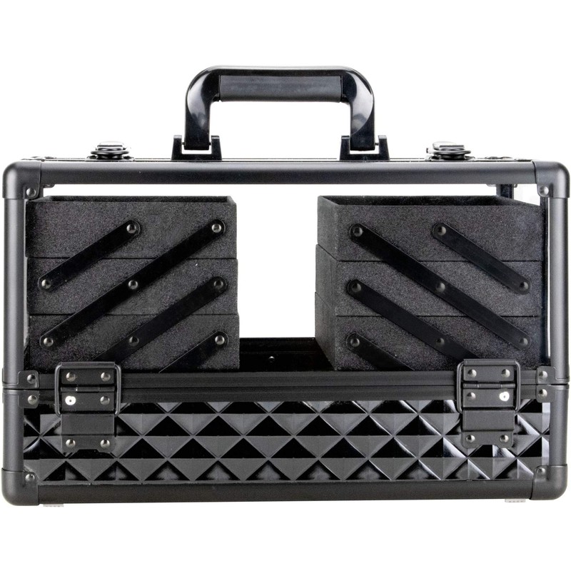 VP016 - Black Diamond Armored Acrylic 6-Tiers Accordion Trays Professional Cosmetic Makeup Train Case