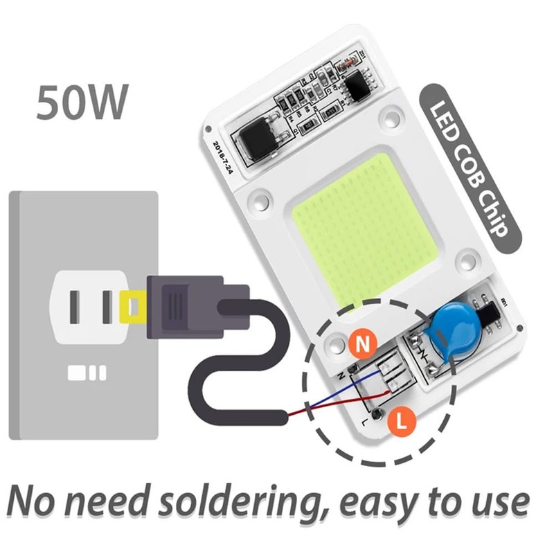 - Package includes: 1 x 50 W COB chip for white plastic holder
