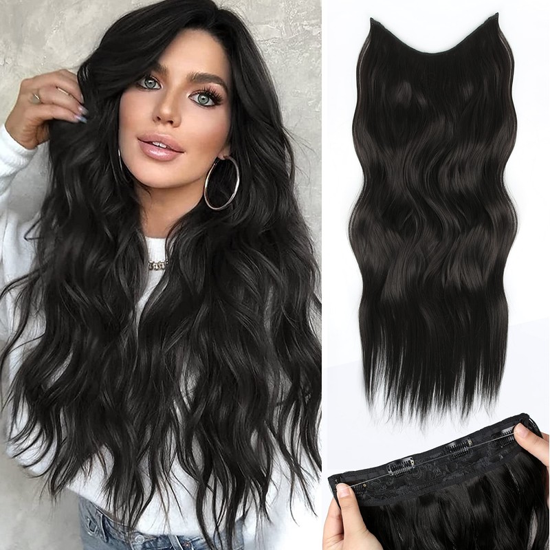 VRbeatter Invisible Wire Hair Extensions with Transparent Wire Adjustable Size 4 Secure Clips Long Wavy Secret Hairpiece for Women(20inch 2#)
