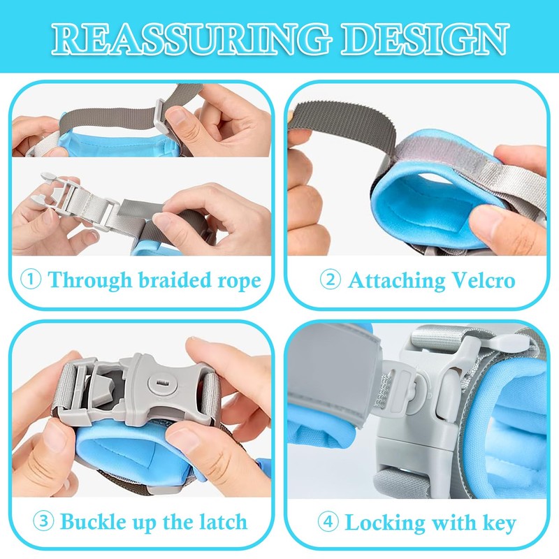 - EASY TO USE: The length can be adjusted and tightened at will. Simply use the built-in key to unlock, and lock, easy to carry and easy to store. (Keep close to your baby after wearing, don't pull too hard to avoid falling, and don't tie the wristband too tight to avoid discomfort.)