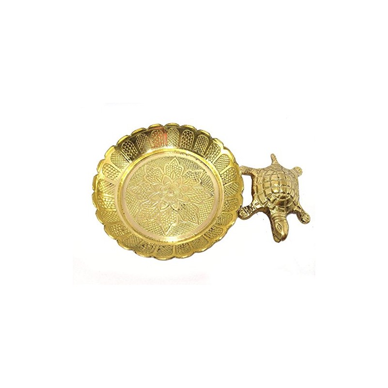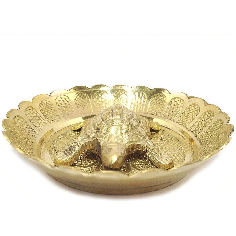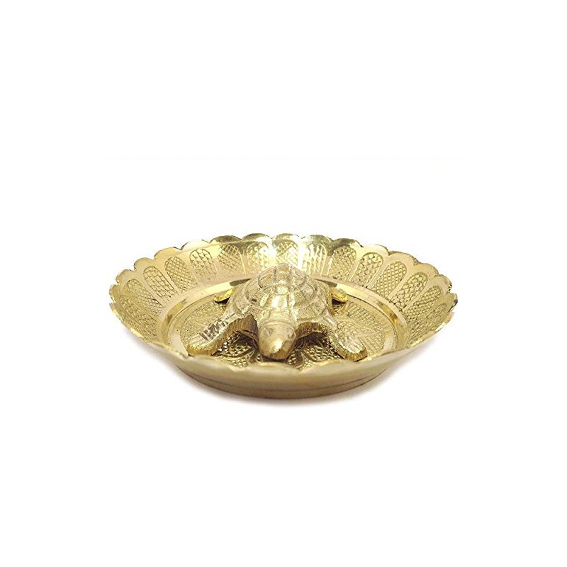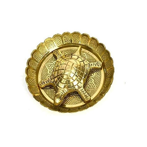 VRINDAVANBAZAAR.COM Pure Brass Vastu Fengshui Tortoise/Turtle with Plate for Goodluck- Small