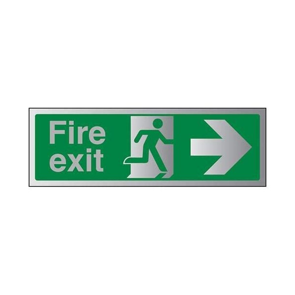 VSafety Fire Exit-Fire Exit Arrow Right Sign - 300mm x 100mm - 3mm Brushed Alu Comp