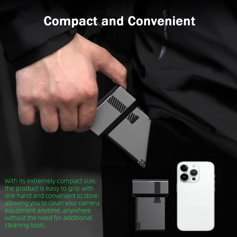 - Handy and Compact Design: This product's ultra-compact form fits snugly in one hand, making it effortless to handle and store. You can clean your camera equipment anytime, anywhere without the need for additional tools.