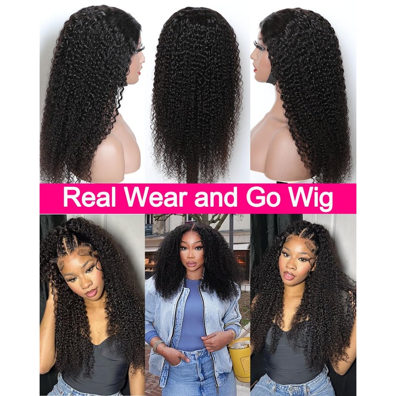 Vshow Kinky Curly Glueless Wigs Human Hair Pre Plucked Put Cut Glueless Curly Lace Front Wigs Human Hair Upgraded No Glue Wear Go Lace Closure Wigs Human Hair Pre Plucked with Baby Hair 24Inch