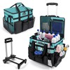 VSHXENG Rolling Cleaning Caddy Bag with Wheels, Large Cleaning Cart Detachable Trolley, Cleaning Bags for Housekeepers With Shoulder Strap & Multi Pockets for Cleaning Tools Storage (Amber Green)