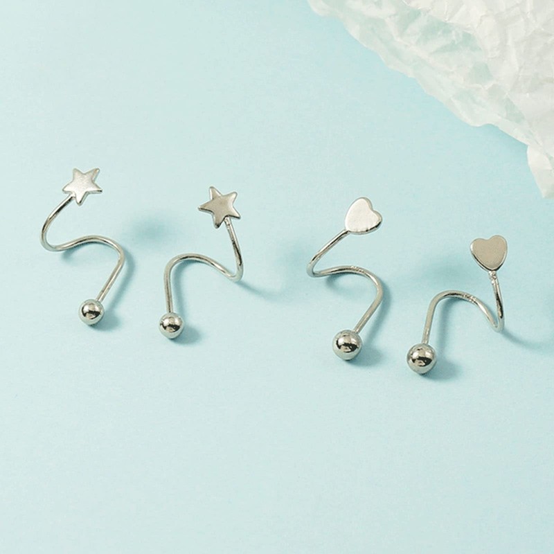 vsilay Silver Twist Crawler Earring Climber Cuff Earring Women Star Heart Minimalist Piercing Earring Hypoallergenic Jewelry
