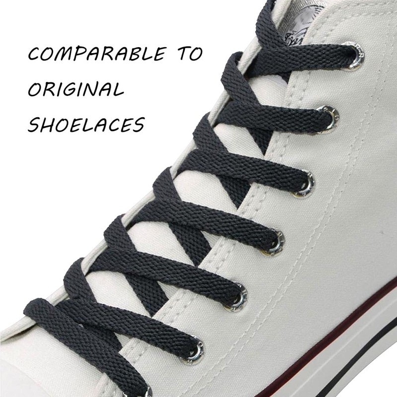 - FASHIONABLE FLAT DARK GRAY SHOE LACES FOR SNEAKERS: A new right color and length premium shoelaces for sneakers will give your favorite sneakers or canvas shoes a new look and bring your shoes much more individual character.
