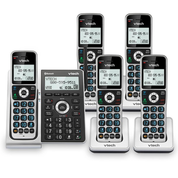 VTech VS306-5 DECT 6.0 5 Handsets Cordless Home Phone with Bluetooth, Answering System, Smart Call Blocker, Caller ID Announce, Backlit Display, Duplex Speakerphone (Silver & Black)