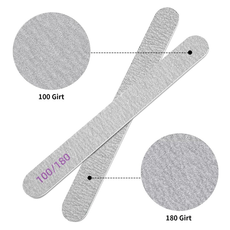 - Double-sided nail files designed for versatile nail care. The 100-grit coarse side efficiently shapes and shortens natural nails, acrylics, or gel extensions with quick material removal. The 180-grit finer side perfects edges, smooths roughness, and creates a salon-quality finish.