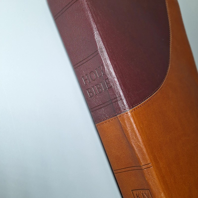 Hard to find Vintage Two Tone Thomas Nelson King James Lay Flat Holy Bible Giant Print Soft Leather KJV Brown