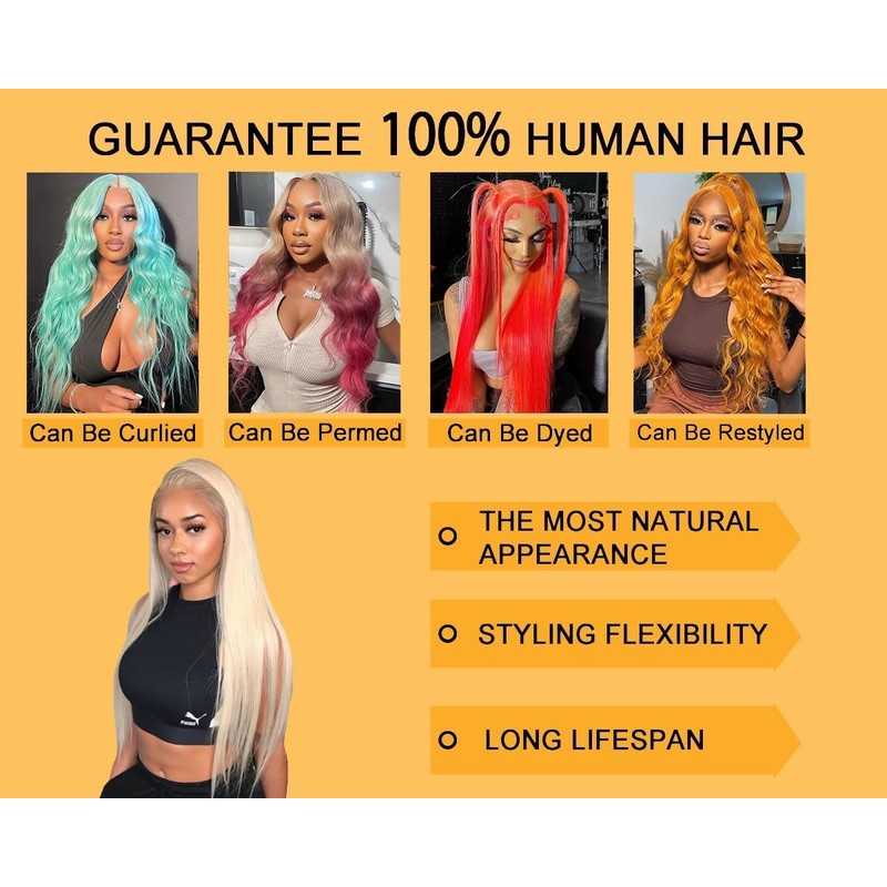 VTKXGG 613 Lace Front Wigs Human Hair 13x4 Straight 100% Human Hair Blonde Wig Real Hair Wigs for Women Human Hair 180% Density Pre Plucked with Baby Hair Perruques De Cheveux Humains Pour Femmes (613 13x4 Straight Wig, 16 Inch)