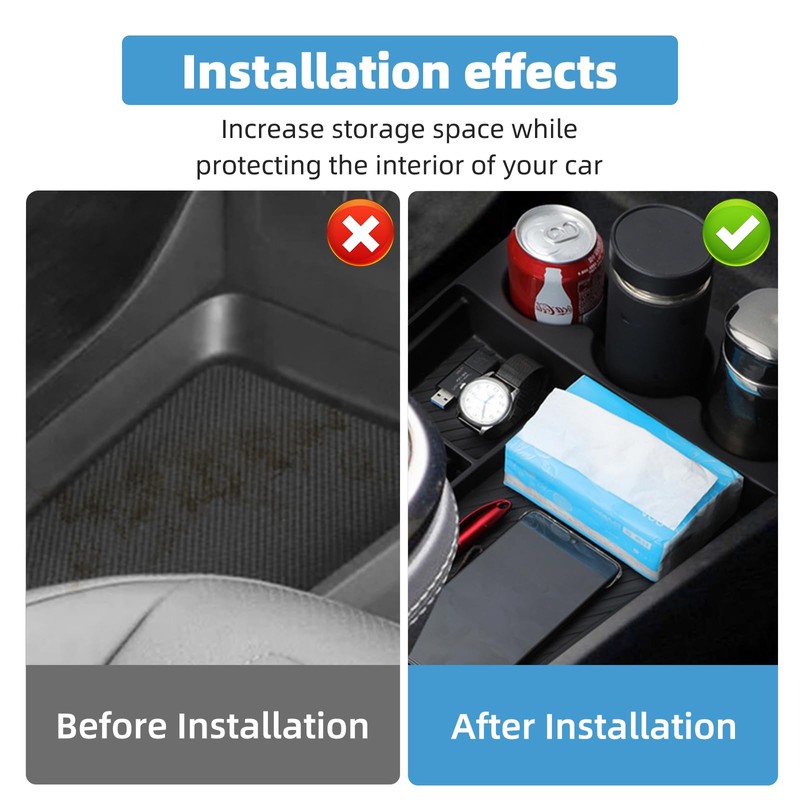 - Keep tidy: center console organizer tray can store mobile phones, wallets, keys, paper towels, lipstick, chewing gum, coins and other items to keep the car clean and tidy.