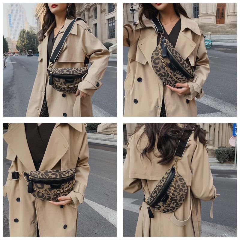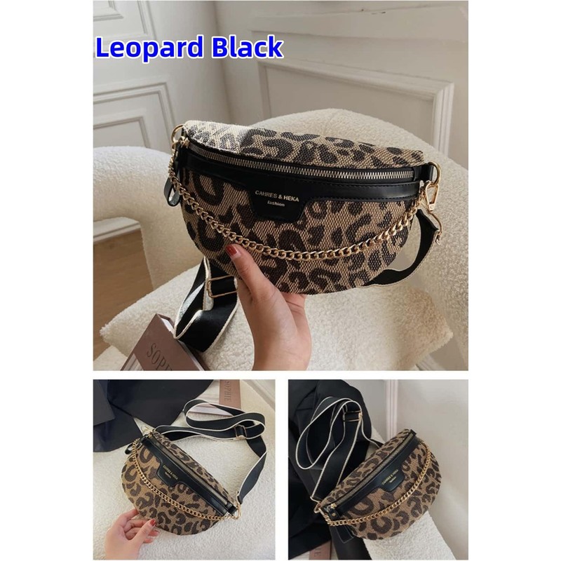 VTYFRY Crossbody Bags for Women Trendy All-match Sling Chest Bag Fashion Leopard Pattern Fanny Pack Zipper Casual Versatile (Leopard Black)