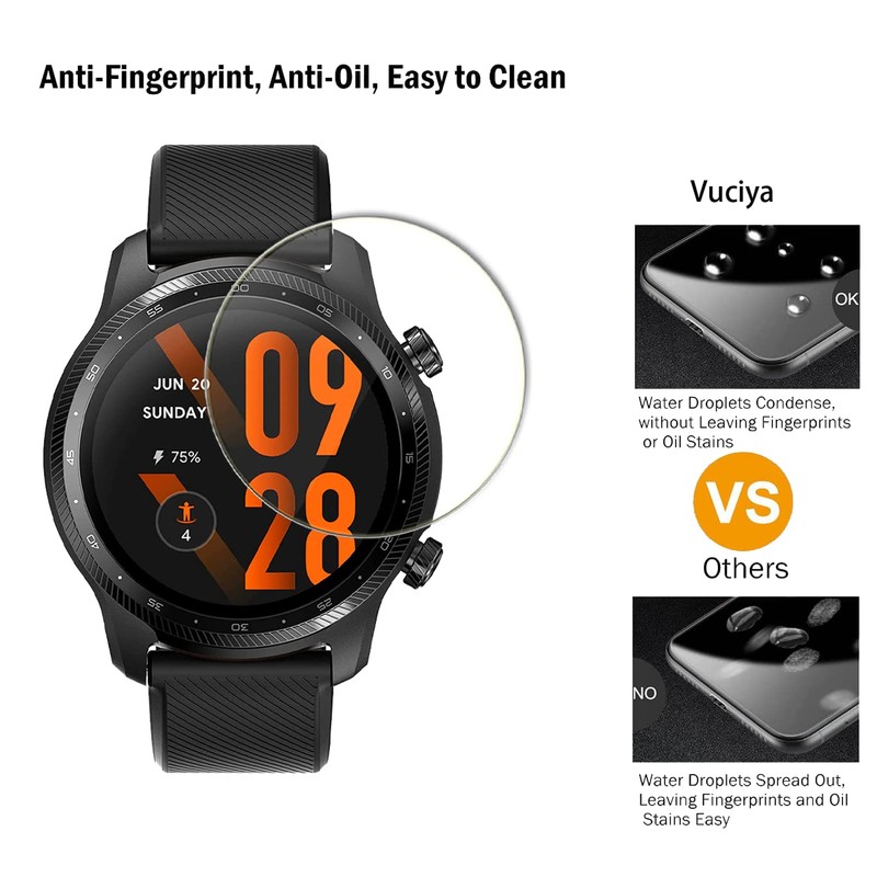 Vuciya [Pack of 4 Screen Protectors for TicWatch Pro 3 Ultra, 9H Hardness Tempered Glass, 2.5D Arc Edges, Anti-Scratch, No Bubble, High Clear Screen Protector, Compatible TicWatch Pro 3 Ultra/TicWatch