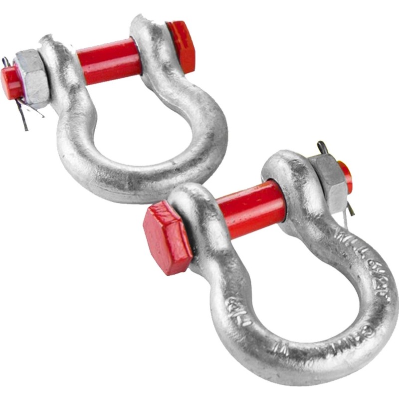 - TOUGH WEBBING SHACKLES - The heavy-duty webbing shackles are made of alloy steel, ideal for heavy towing situations and long-lasting durability. A galvanized finish offers all-weather and rust protection. The quick-release cotter pin allows for easy hook up and fast changes in various situations.