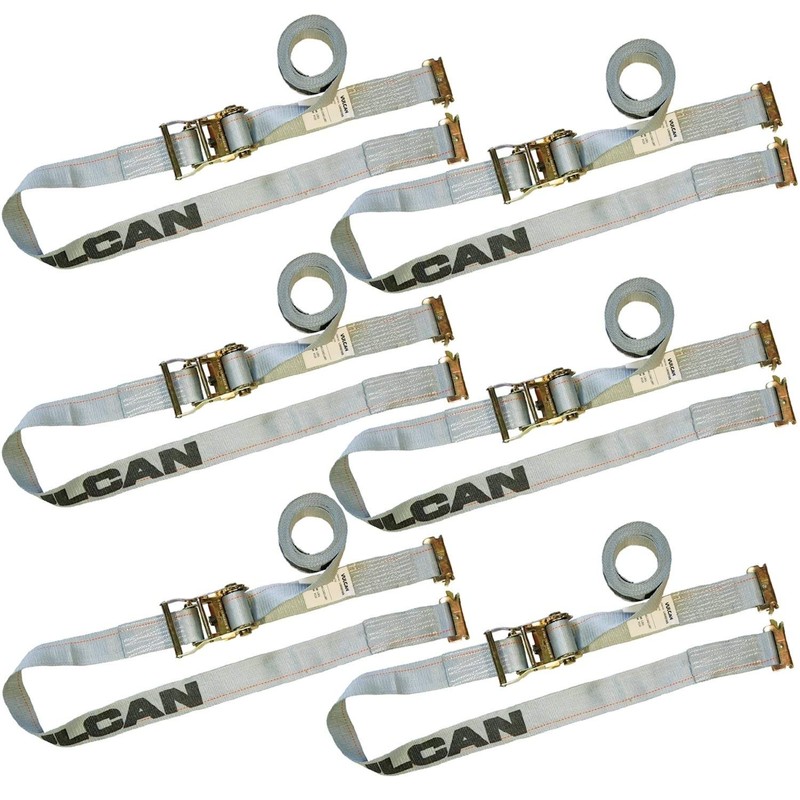 VULCAN Logistic Strap for E Track - Ratchet Style - 16 Foot - 6 Pack - Gray - 1,333 Pound Safe Working Load