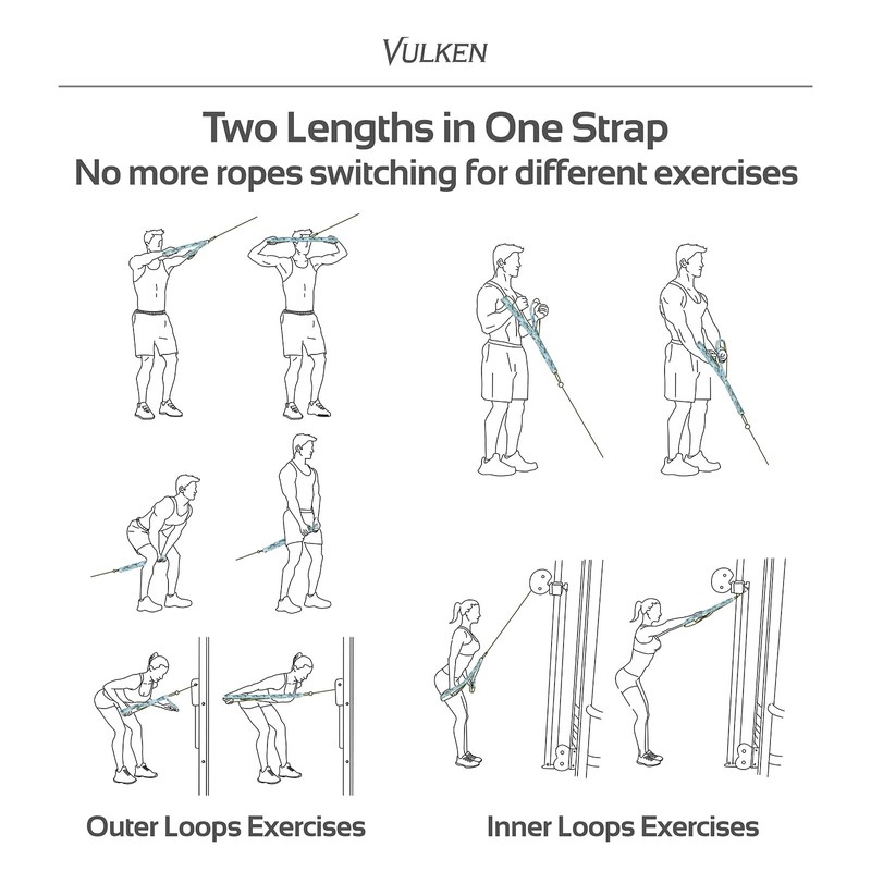 - One Triceps Rope for Diversified Exercises - before you might have needed to switch between the 27 and 36 inches triceps ropes for difference exercises, however, now you only need to take your Vulken tricep straps to the gym. Additionally, its two-sizes-in-one design provides great versatility to your workout routine by allowing you to easily switch lengths between different rope exercises such as face pull, triceps pushdowns, bicep curls and more cable attachment exercises.